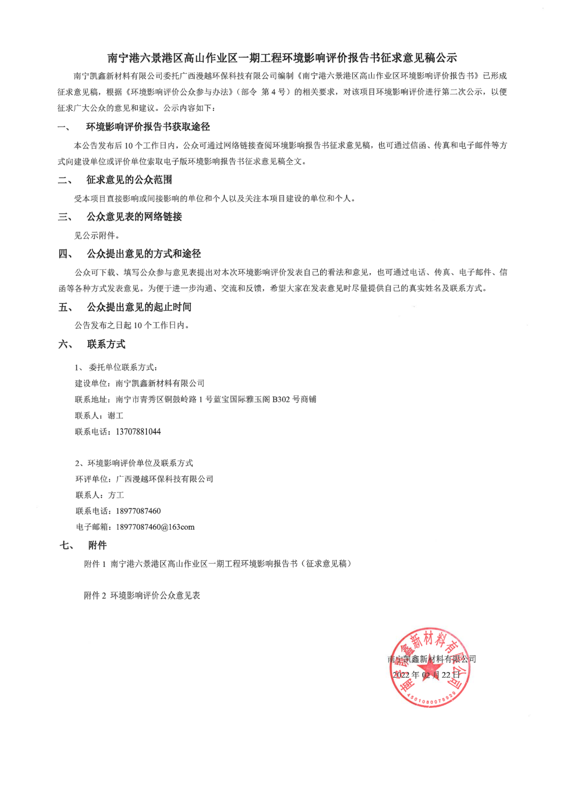 南宁港六景港区高山作业区一期工程环境影响评价报告书征求意见稿公示
