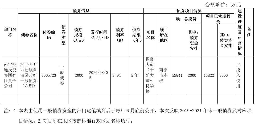 截至2021年末发行的新增政府一般债券情况表
