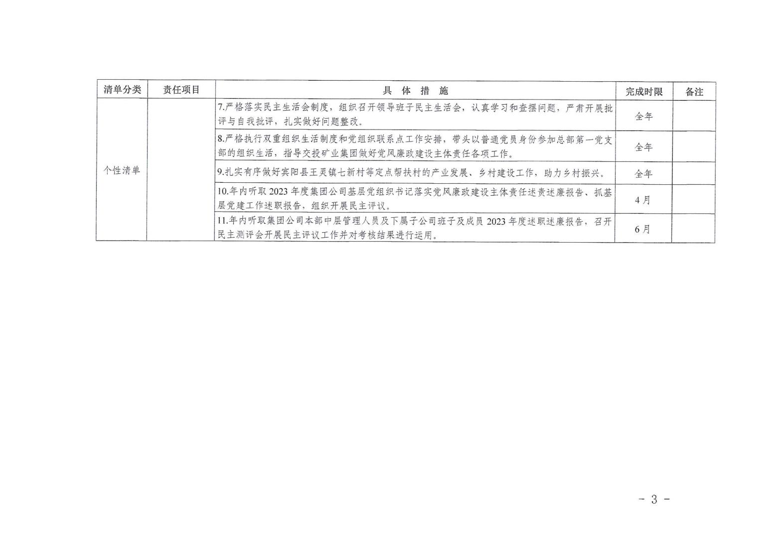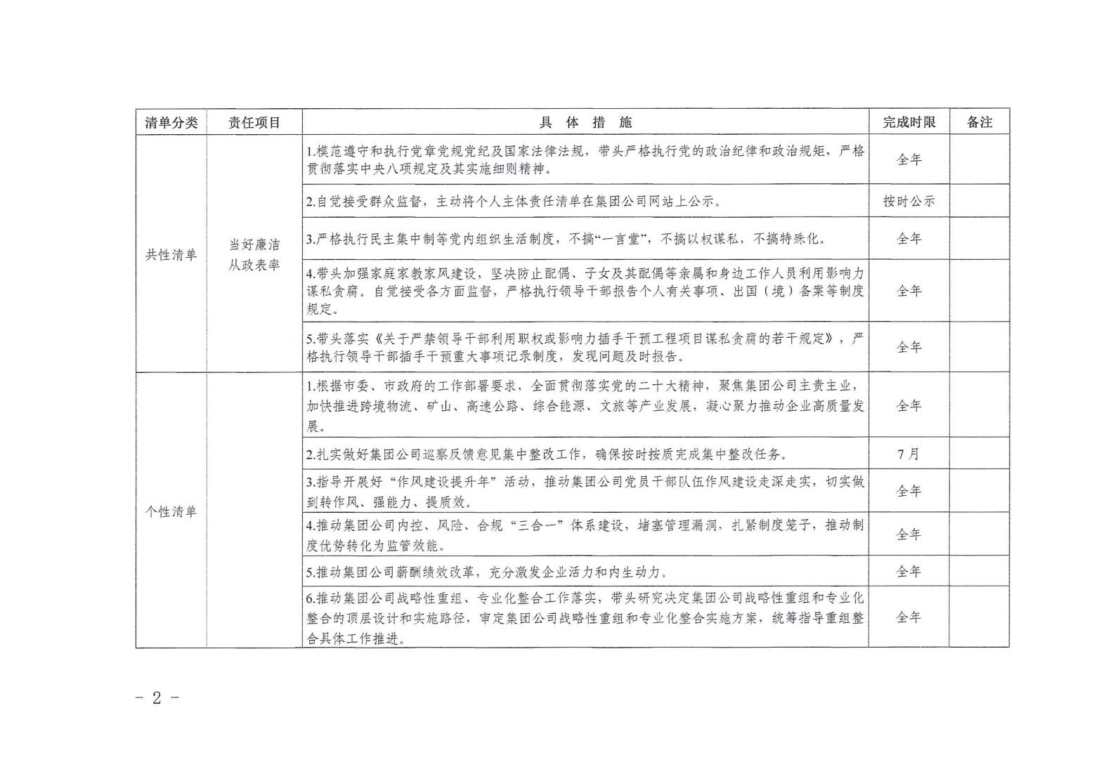 领导班子其他成员2024年度党风廉政建设“一岗双责”清单(一)