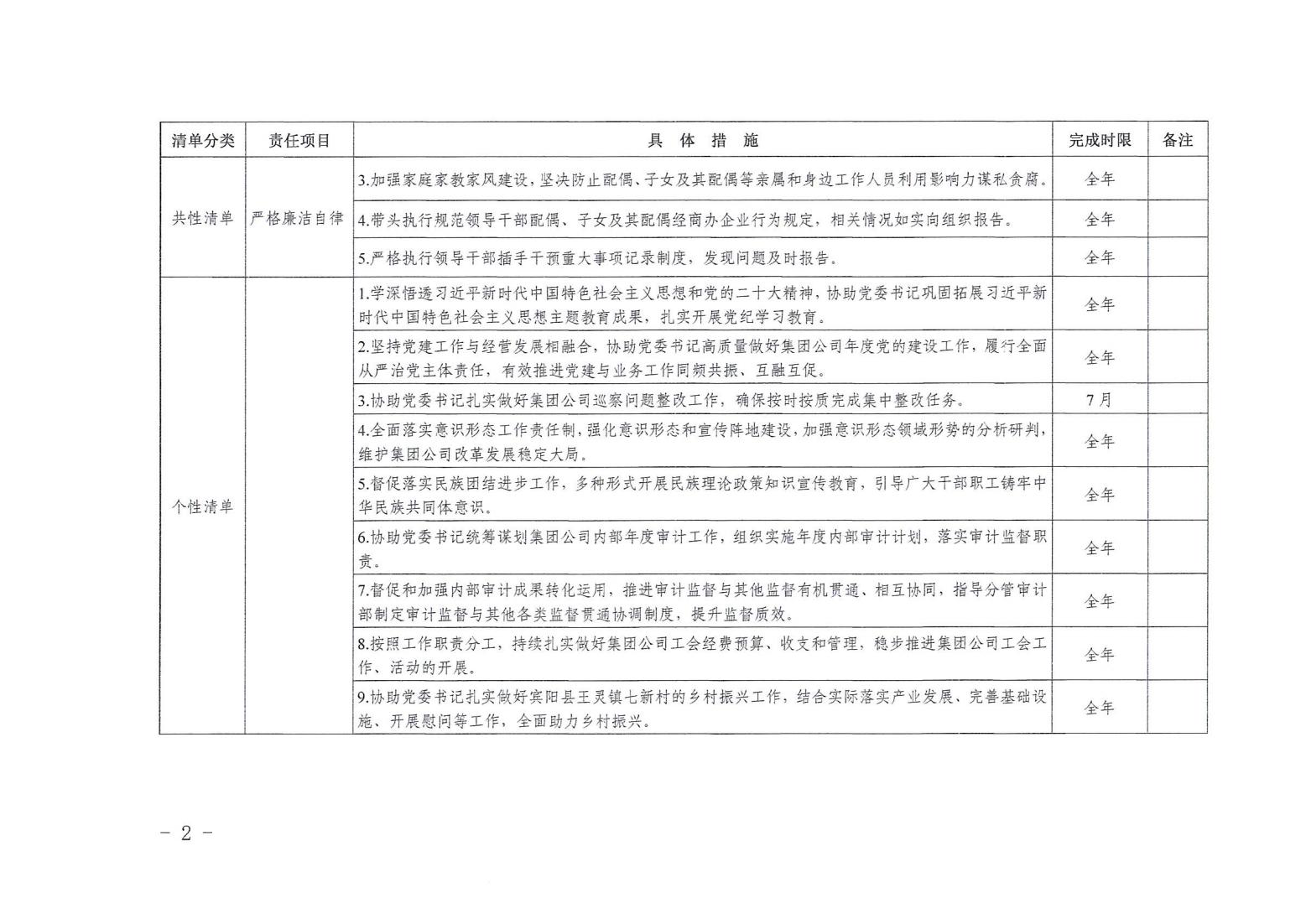 领导班子其他成员2024年度党风廉政建设“一岗双责”清单(二)