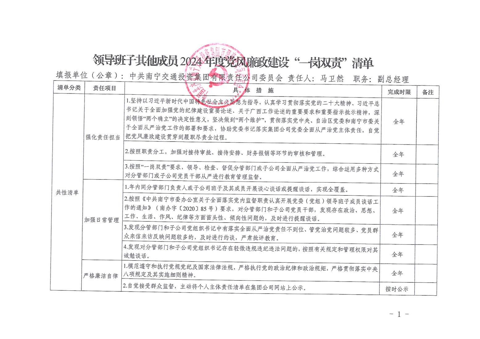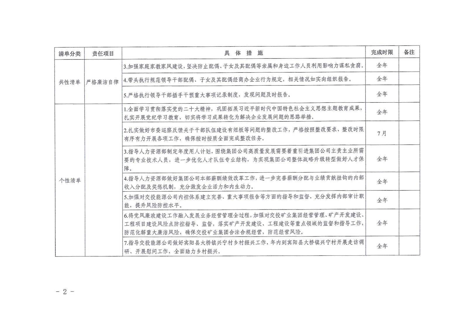 领导班子其他成员2024年度党风廉政建设“一岗双责”清单(四)