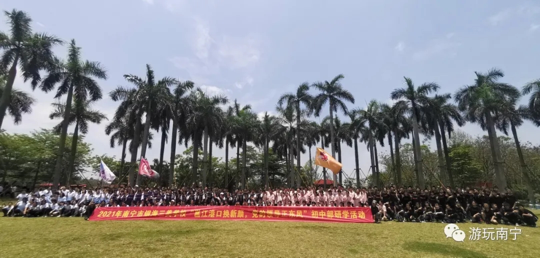 2021年5月8日,南宁市银海三美学校初一年级800多名学生“邕江港口换新颜,党的领导正东风”研学活动在南宁市老口航运枢纽研学基地开展。