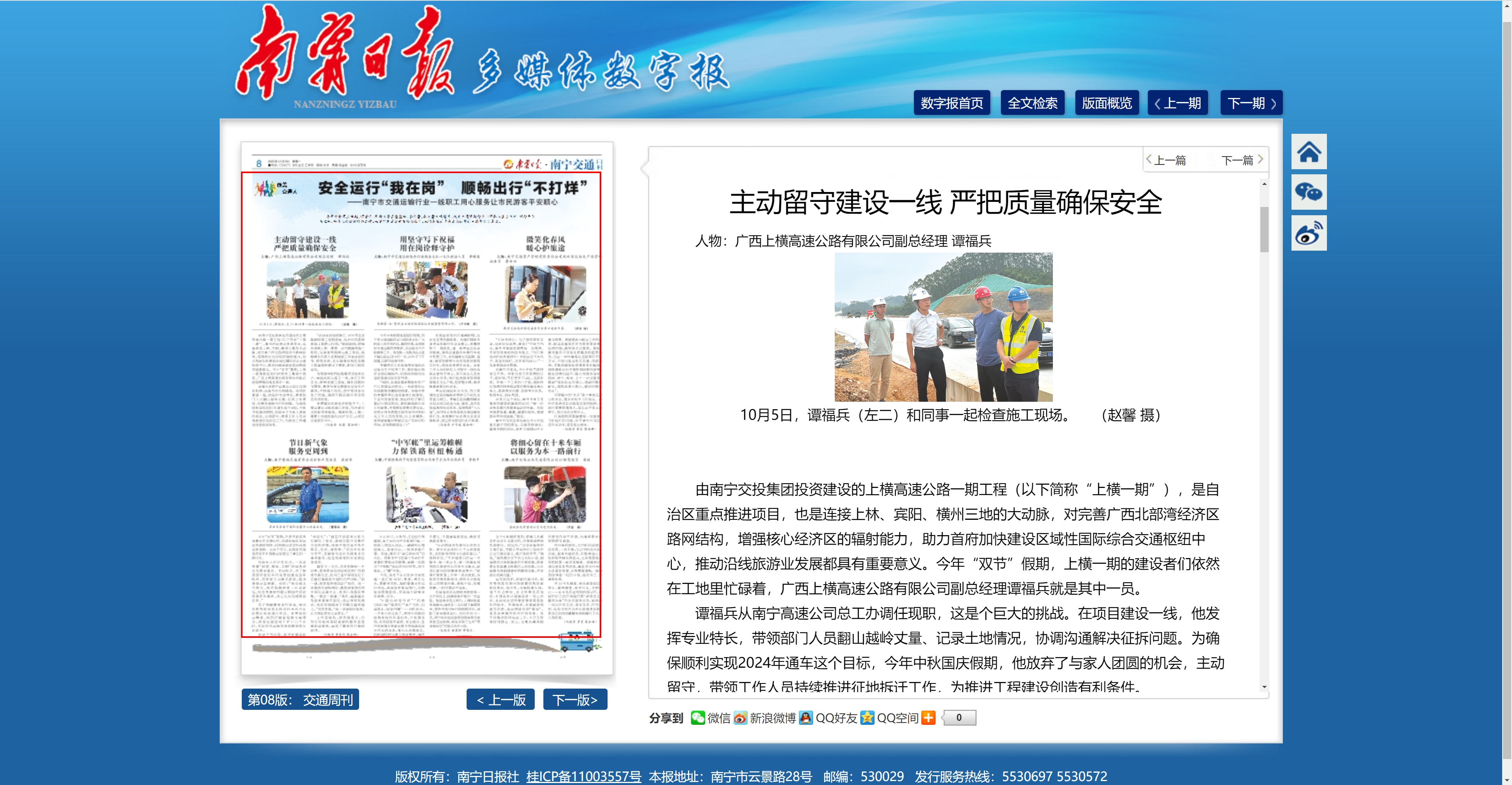 主动留守建设一线 严把质量确保安全-广西上横高速公路有限公司副总经理 谭福兵