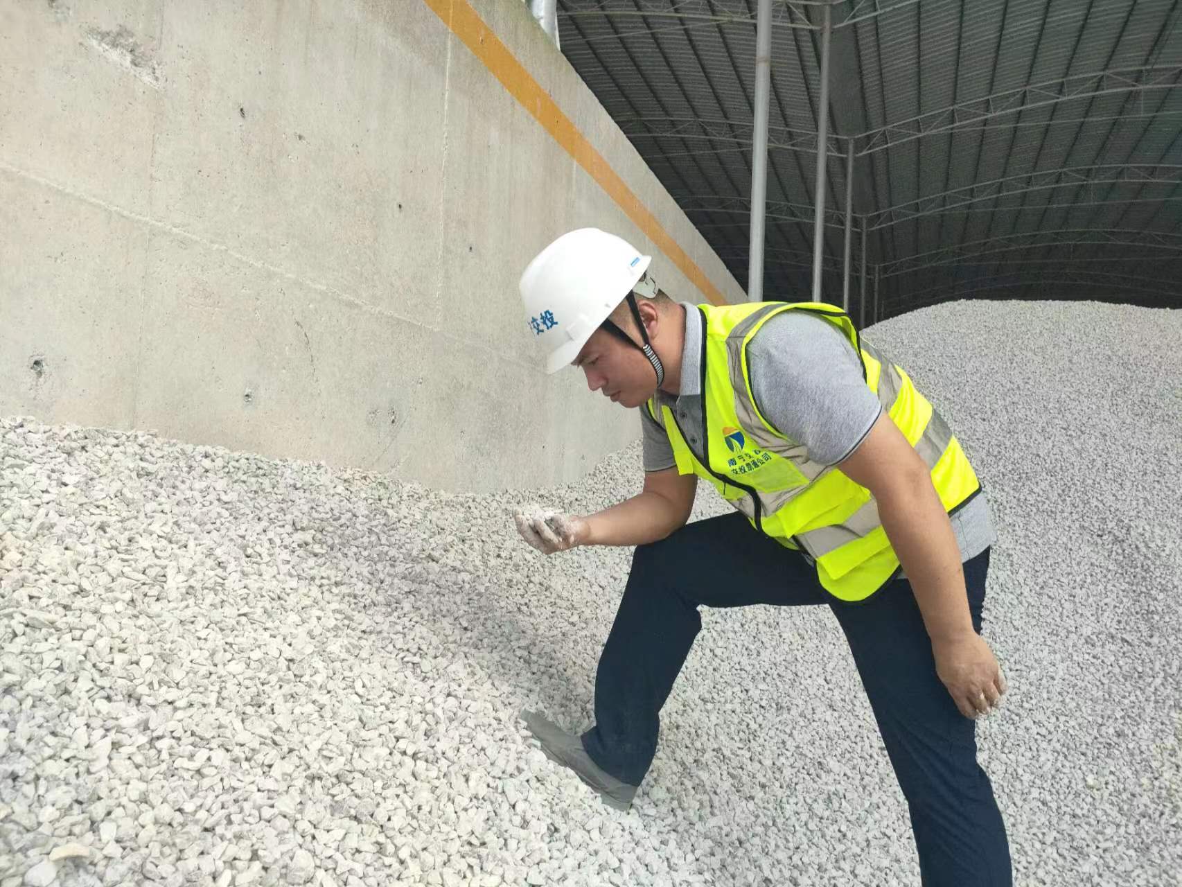 在项目的砂石仓库,业务员们对仓库里的石料情况进行认真比对,严格核验砂石规格、品质是否符合项目要求,确保物料按需运送。他们用行动诠释着担当,用坚守为项目建设助力。