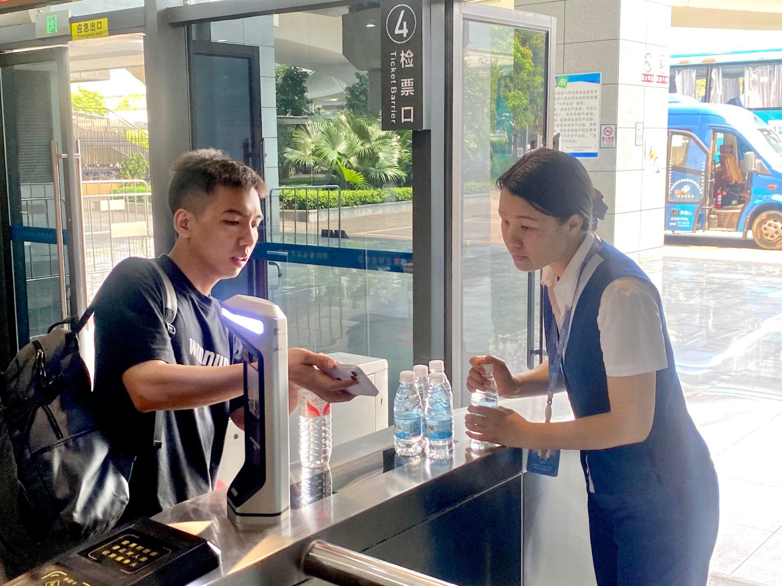 售票员微笑面对乘客,耐心为旅客答疑解惑,帮助旅客提供最佳出行选择;“三品”检查员认真做到“逢包必检、逢液必查”,保障旅客安全出行;检票员严格查验车辆及驾驶员证件,热情招呼旅客检票乘车,为来往的旅客做好乘车引导服务;安全检验员认真做好车辆发车前安全设施设备检查及发车前安全告知工作。