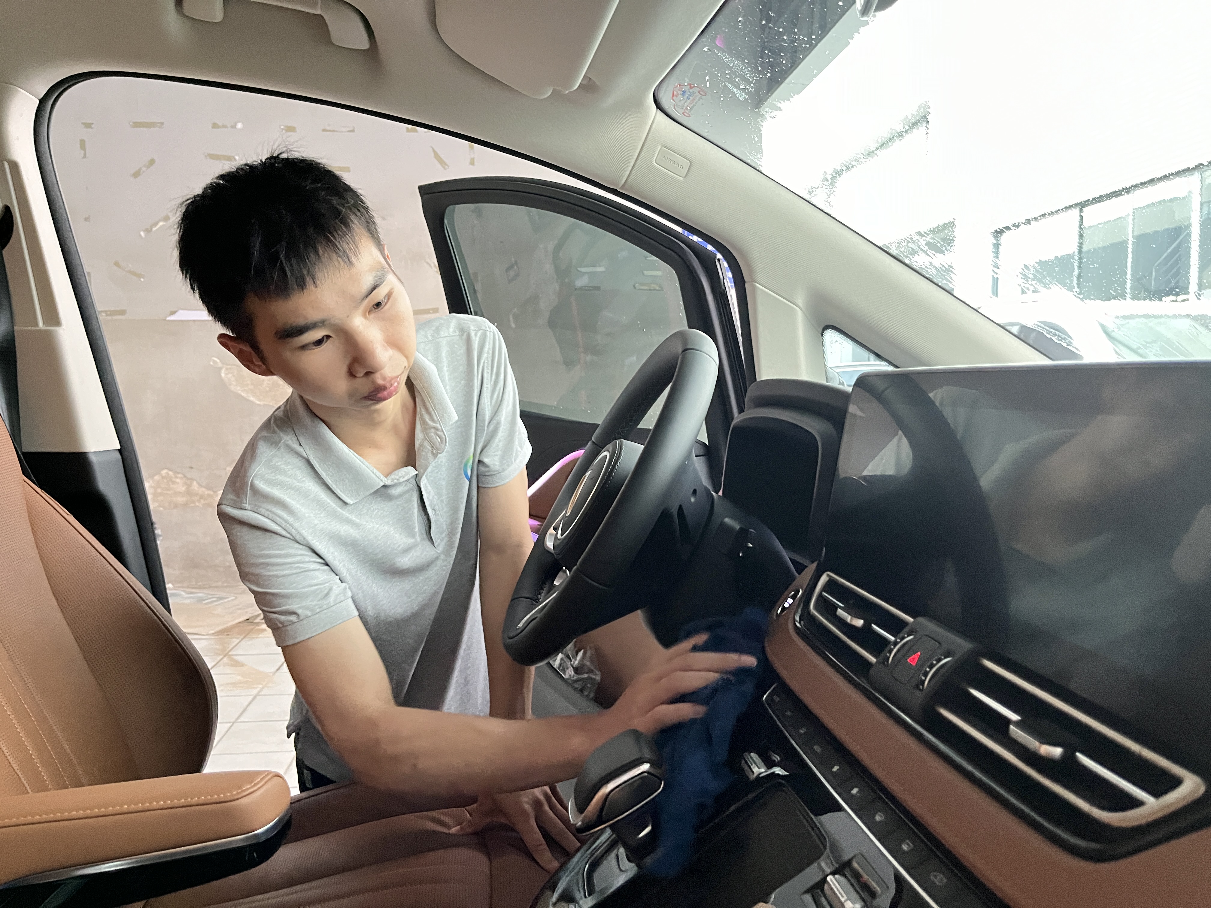 五一假期,自驾游需求持续升温,租车市场也迎来了小高峰,康大汽车租赁公司为确保客户在旅游高峰时段能快速取车,拥有愉快的用车体验,租赁业务员们对出租车辆进行认真环检和清洁。