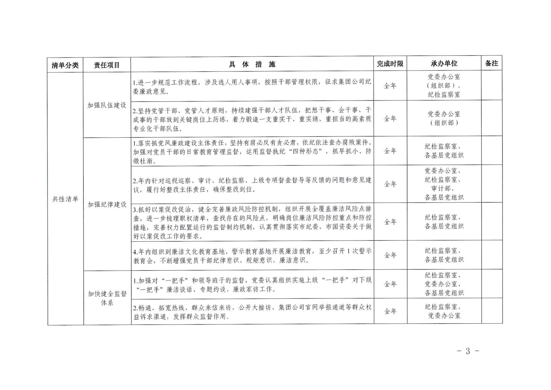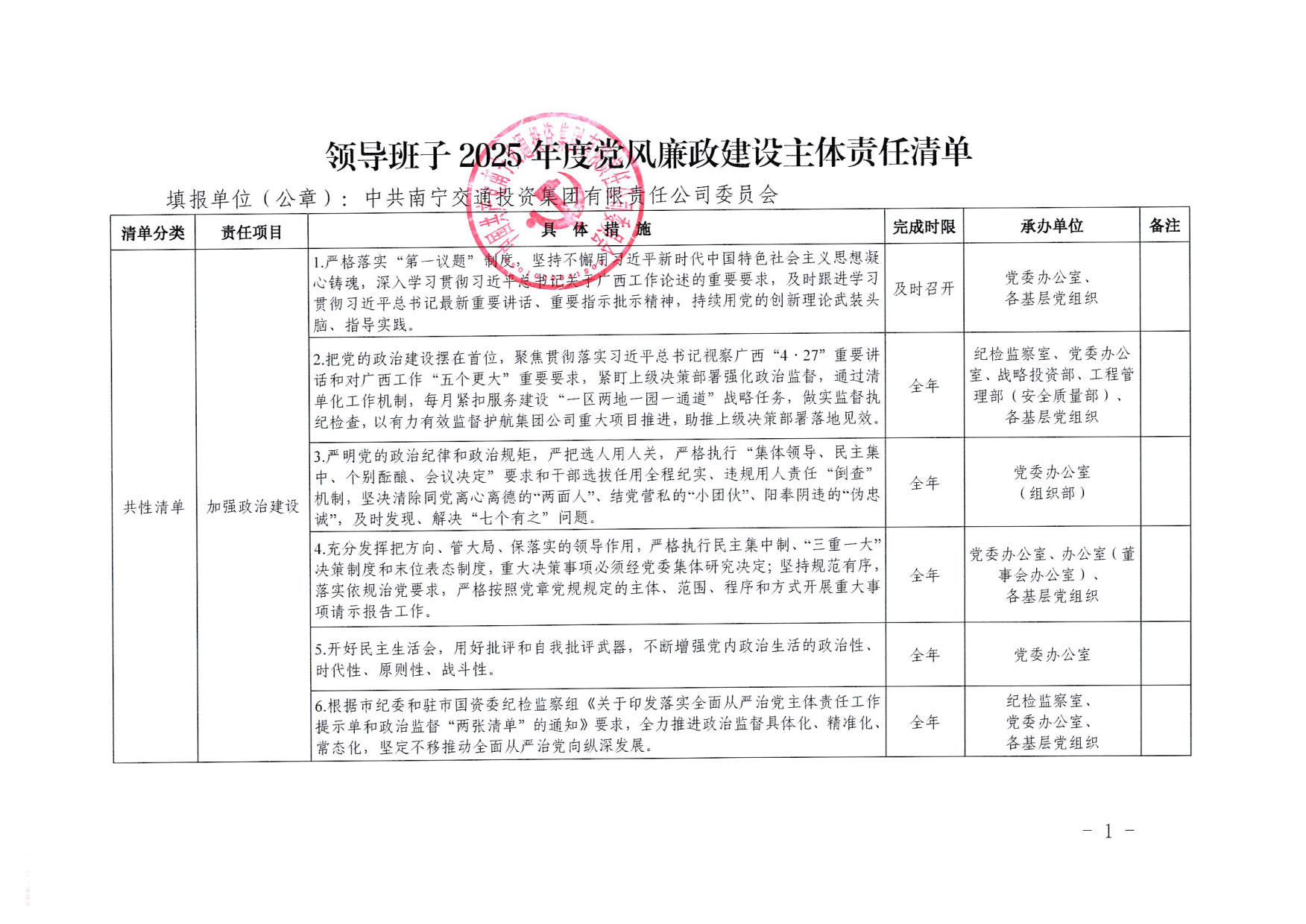 英皇娱乐 领导班子2025年度党风廉政建设主体责任清单