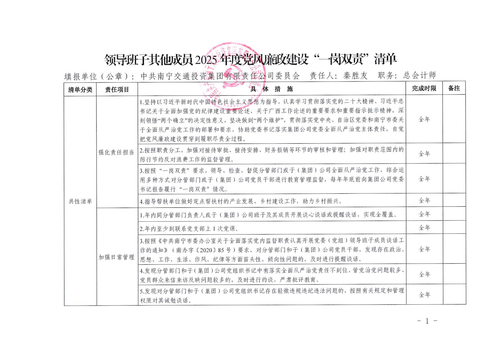 英皇娱乐 领导班子其他成员2025年度党风廉政建设“一岗双责”清单(七)