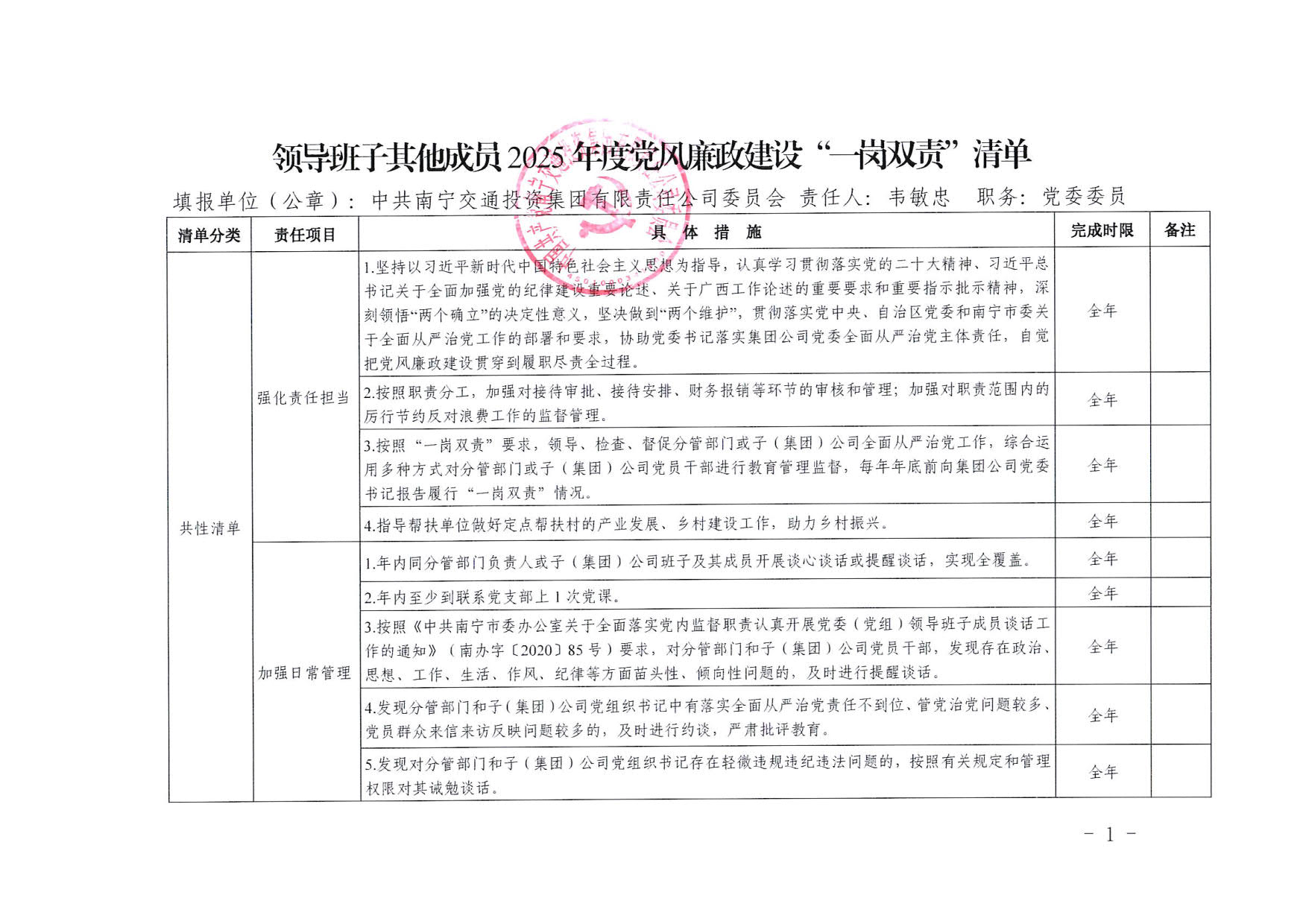 英皇娱乐 领导班子其他成员2025年度党风廉政建设“一岗双责”清单(七)