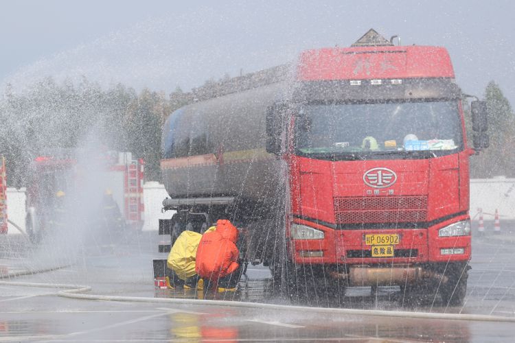 在各部门紧密配合、协同作战下,经过紧张救援,泄漏点被成功封堵,现场污染物得到妥善清理,环境监测指标恢复正常,事故车辆也被安全转移,演练圆满结束。