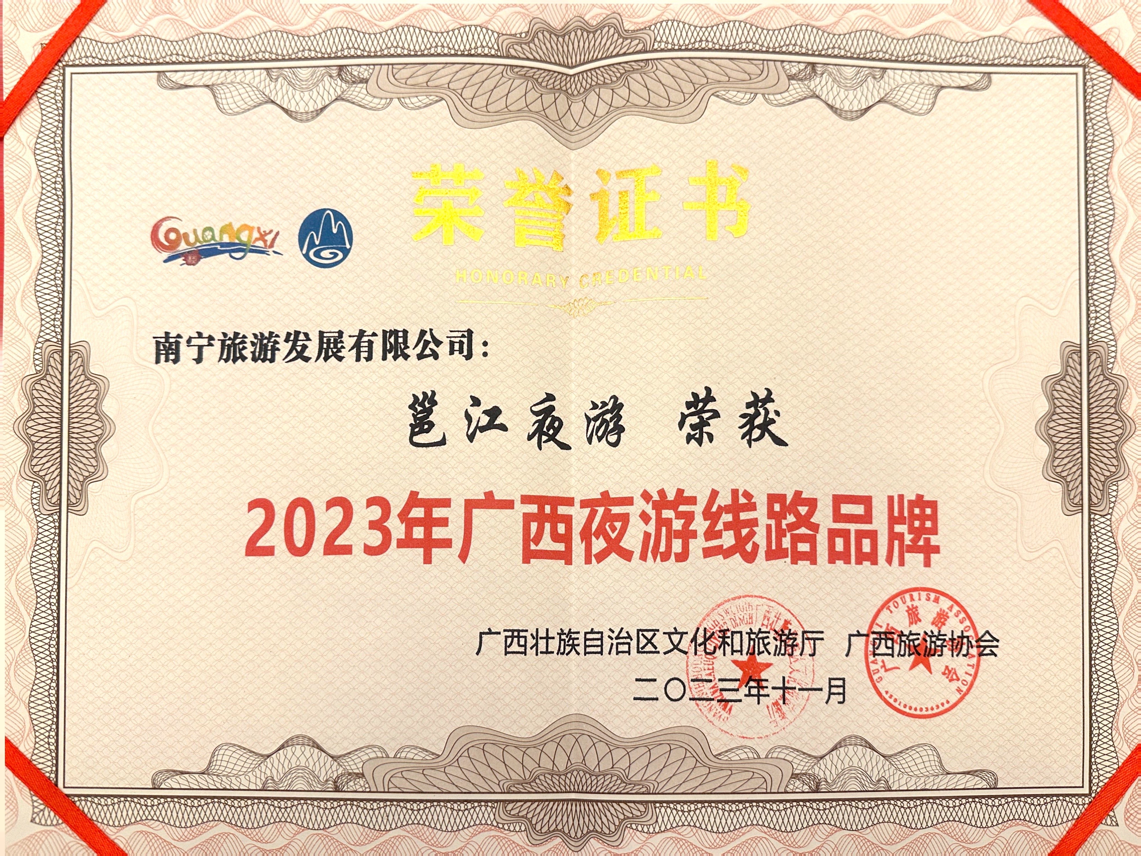 喜报!邕江夜游荣获“2023年广西夜游路线品牌”称号