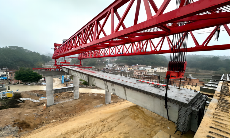 南宾公路项目高田大桥首榀箱梁顺利架设完成
