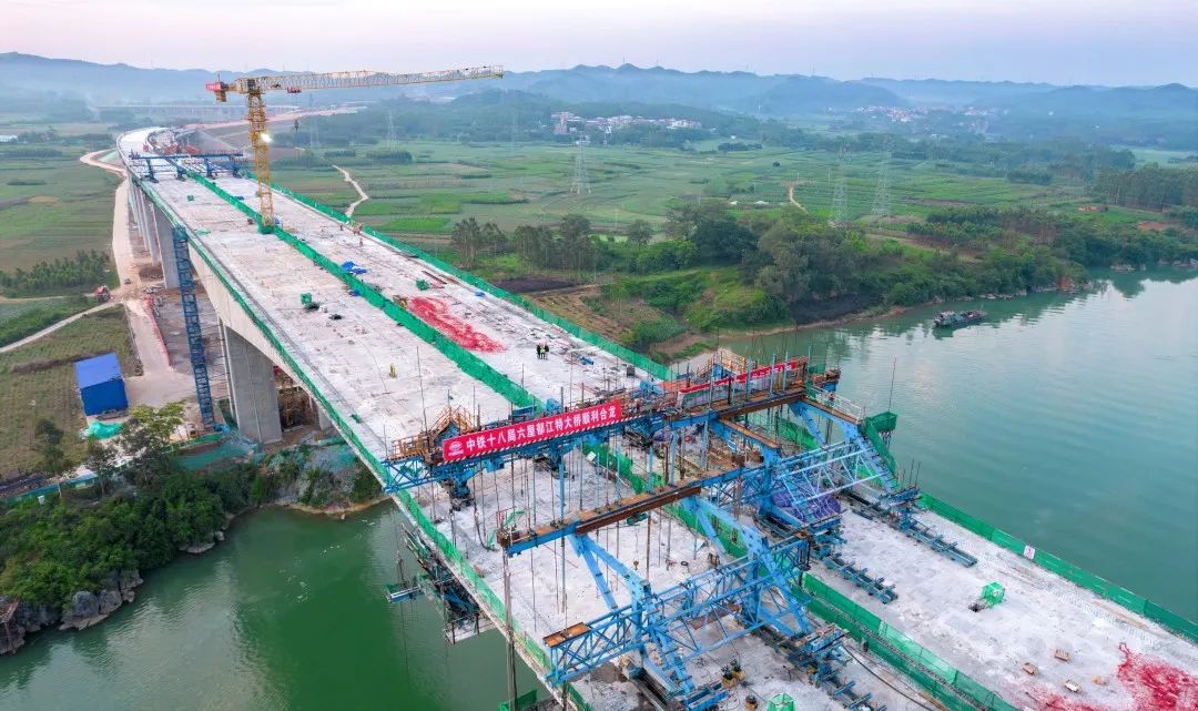 05-19广西最大跨度刚构连续梁桥六屋郁江特大桥主跨合龙 六宾高速实现全线贯通