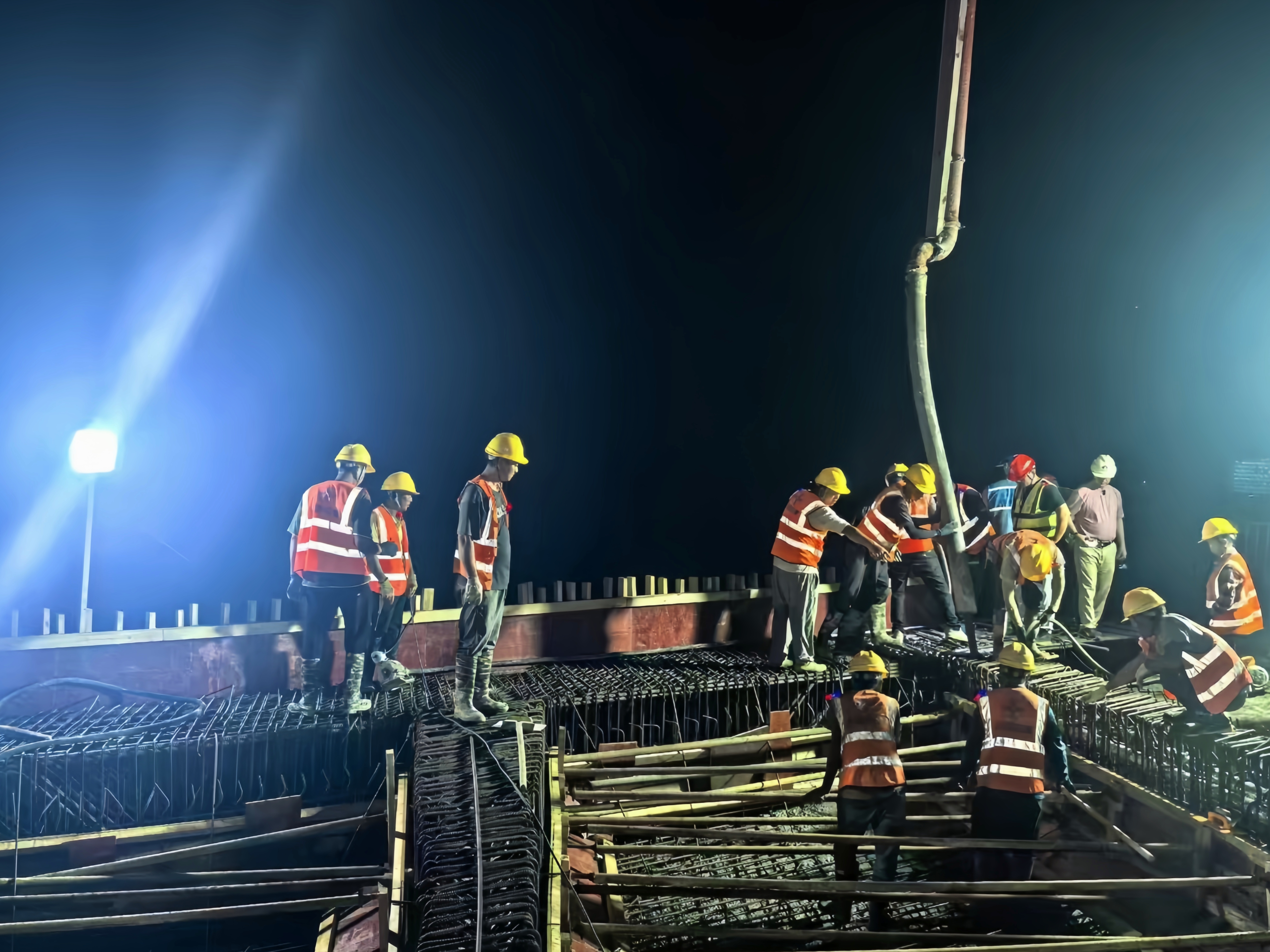 南宁南过境线(吴隆段)公路首件现浇箱 梁底腹板浇筑完成