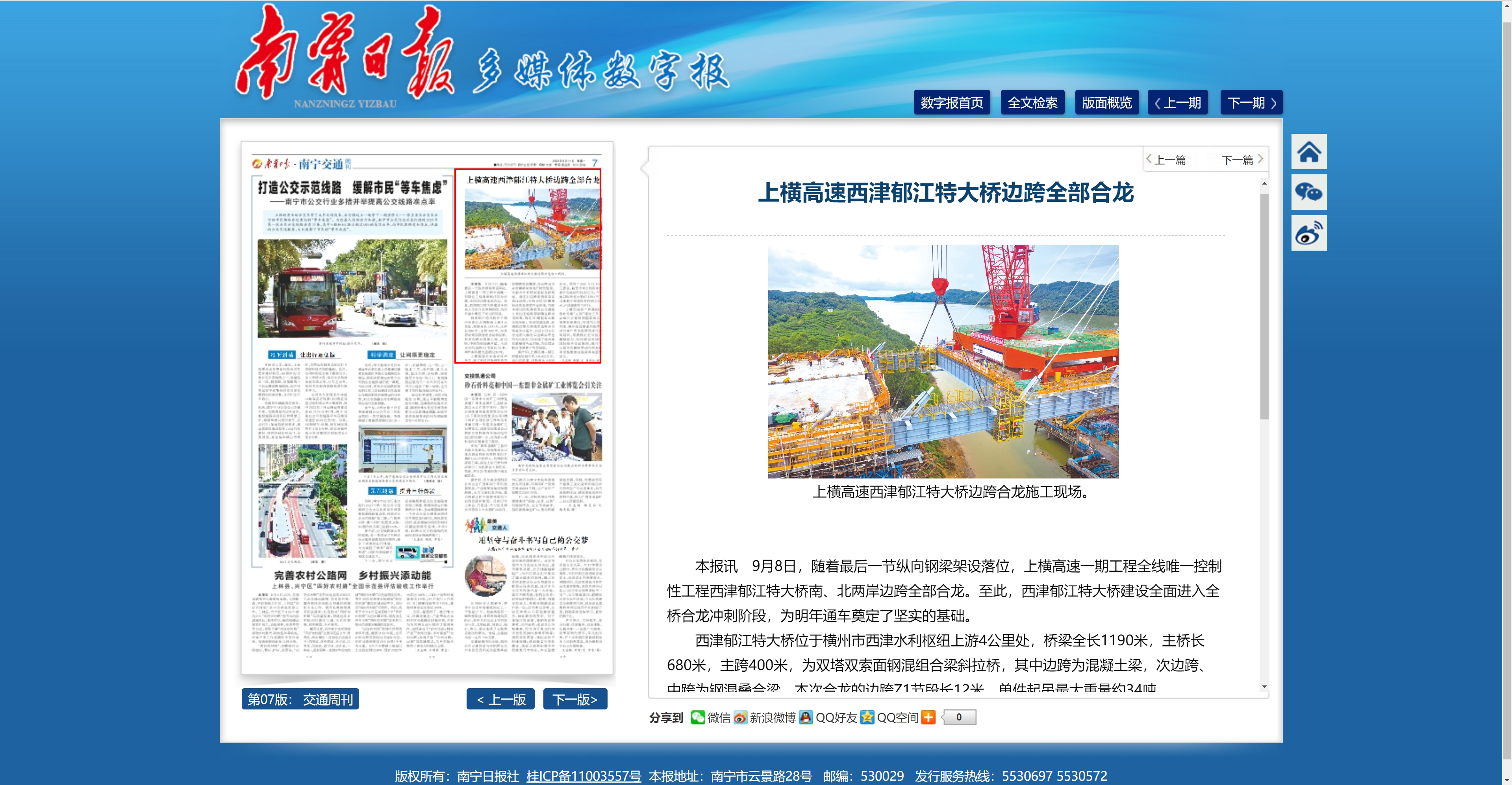 09-11上横高速西津郁江特大桥边跨全部合龙