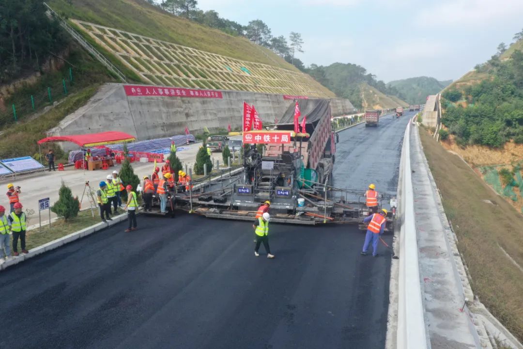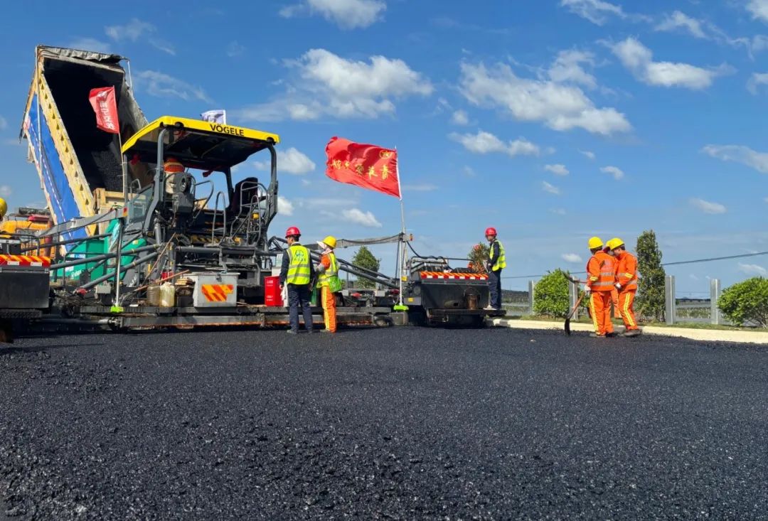 上横高速公路完成首段沥青下面层试验段摊铺作业