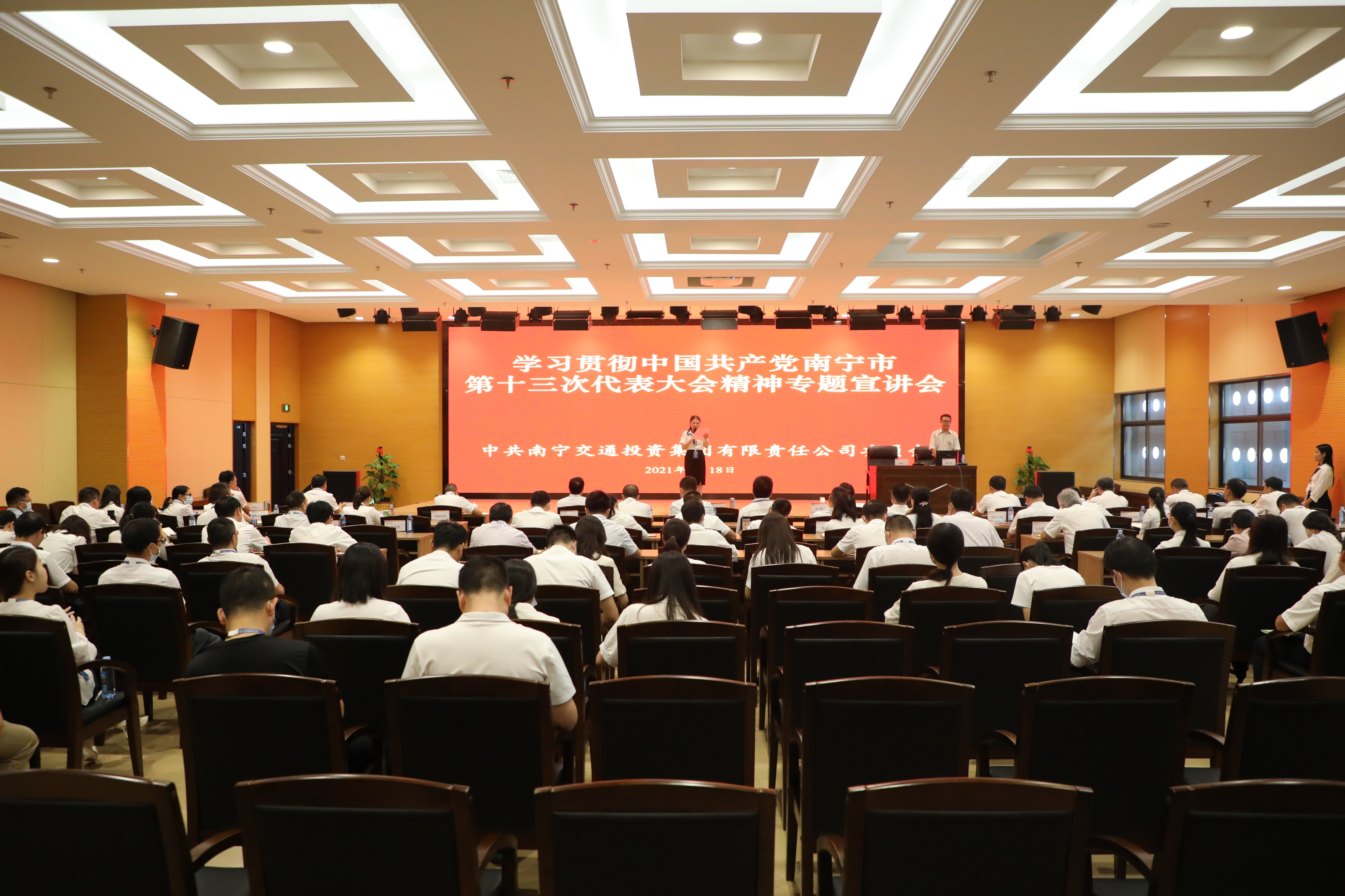 为深刻学习领会南宁市第十三次党代会精神,引导广大党员干部充分认识党代会的重大意义,9月18日上午,集团公司党委召开学习贯彻中国共产党南宁市第十三次代表大会精神宣讲会,邀请南宁市党史学习教育宣讲团成员、中共南宁市委党校黄万求副教授来到集团公司授课。集团公司领导农明姬、张玉波、谢万升、林海松、周宏,集团公司总法律顾问、总经理助理,各子公司领导班子成员以及集团总部第一、第二党支部全体党员共120多人聆听宣讲。