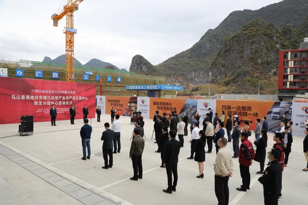 05-14英皇娱乐 马山县易地扶贫搬迁后续产业农产品交易中心项目举行物流分拨中心开业仪式