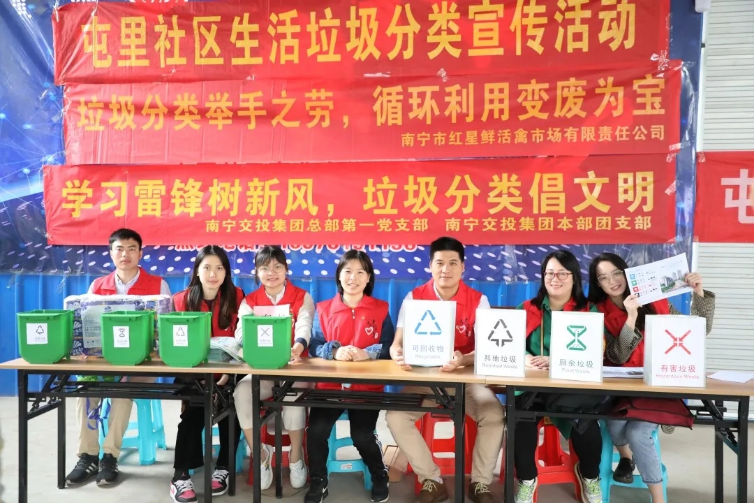 垃圾分类是“变废为宝”、改善生态环境的重要途径,更是创建全国卫生城市的一项重要工作。3月17日上午,在集团公司党委的领导下,集团公司本部党员团员们来到青秀区屯里社区开展垃圾分类主题学雷锋志愿服务活动,为社区居民宣传垃圾分类知识。布置好宣传点后,党员团员们化身垃圾分类宣传员,为来往的居民发放宣传单,讲解垃圾分类的意义和方法,普及垃圾分类的益处;邀请大家参与垃圾分类互动小游戏,通过正确投放垃圾卡片,让社区...