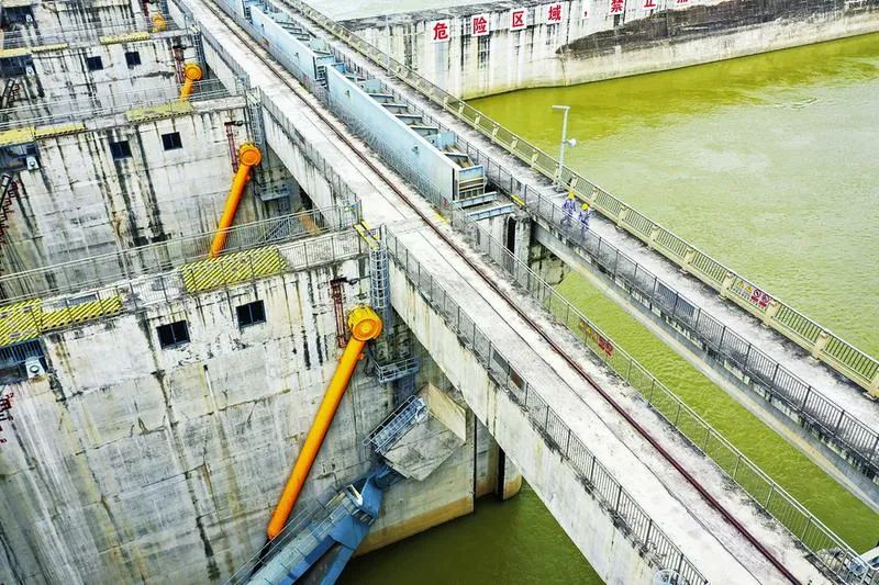 工作人员在邕宁水利枢纽工程拦河大坝进行安全巡查 -